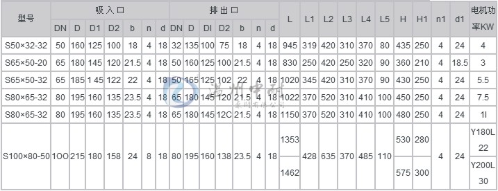 流量:3.2~50m3/h,揚程:12.5~32m,轉數:2900r/min,功率:0.75~7.5KW,口徑:25~80mm,使用溫度:<100℃